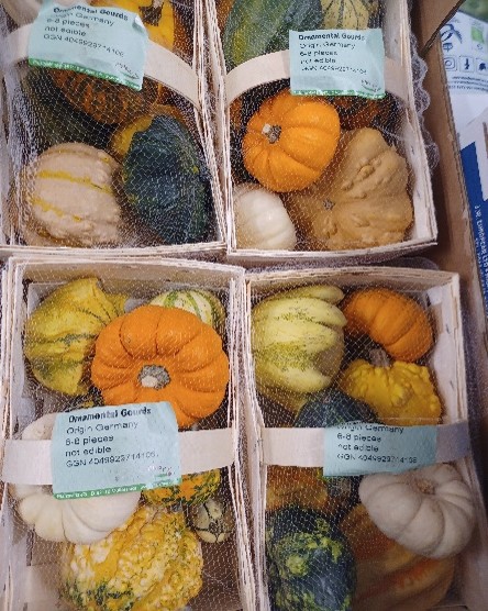 There are also Munchkins (baby pumpkins) and Display Gourds for decoration.