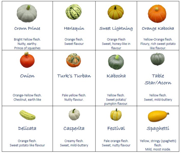 Although a lot of fuss surrounds pumpkins in October, the true stars of the show at this time of year are the British Autumn Squashes which continue way past Halloween and have great flavours and colours. These are grown at Bedlams Organic Farm in Cambridgeshire. Below is a quick mini-guide of a selection and 10kg mixed boxes are also available: -