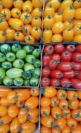 Although the UK Tomato season draws to a close, there are some fantastic tomatoes from Italy including these mixed colours Datterini and Black Baby-Plum (brown) above. These vibrant Romero Peppers match the Autumn colours.