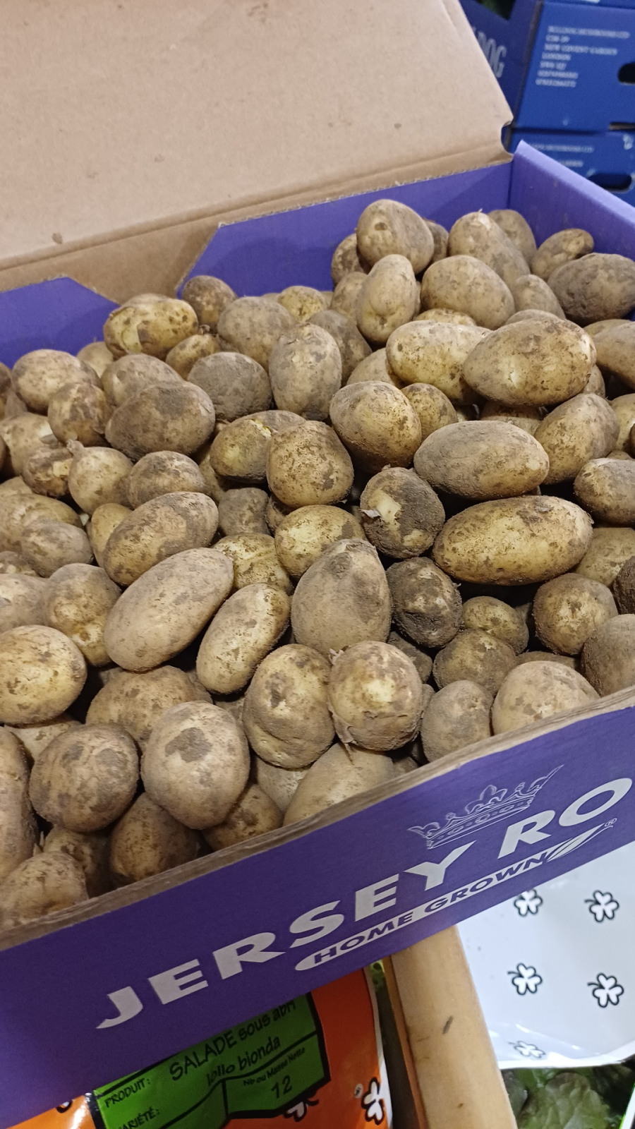 Jersey Royals Ware (large) and Mids (smaller) have just started to come through in small quantities, which always means the price is high in the early part of the season.